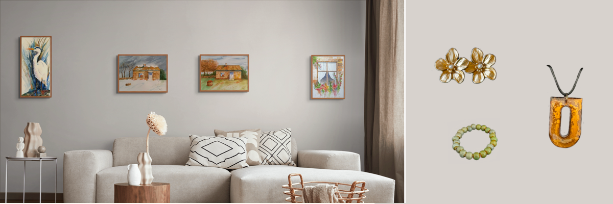 Hos mig får du upptäcka både målningar och smycken – skapade med omsorg, känsla och en gnutta nyfikenhet. Varje verk bär på sin egen berättelse och väntar på att bli en del av din.