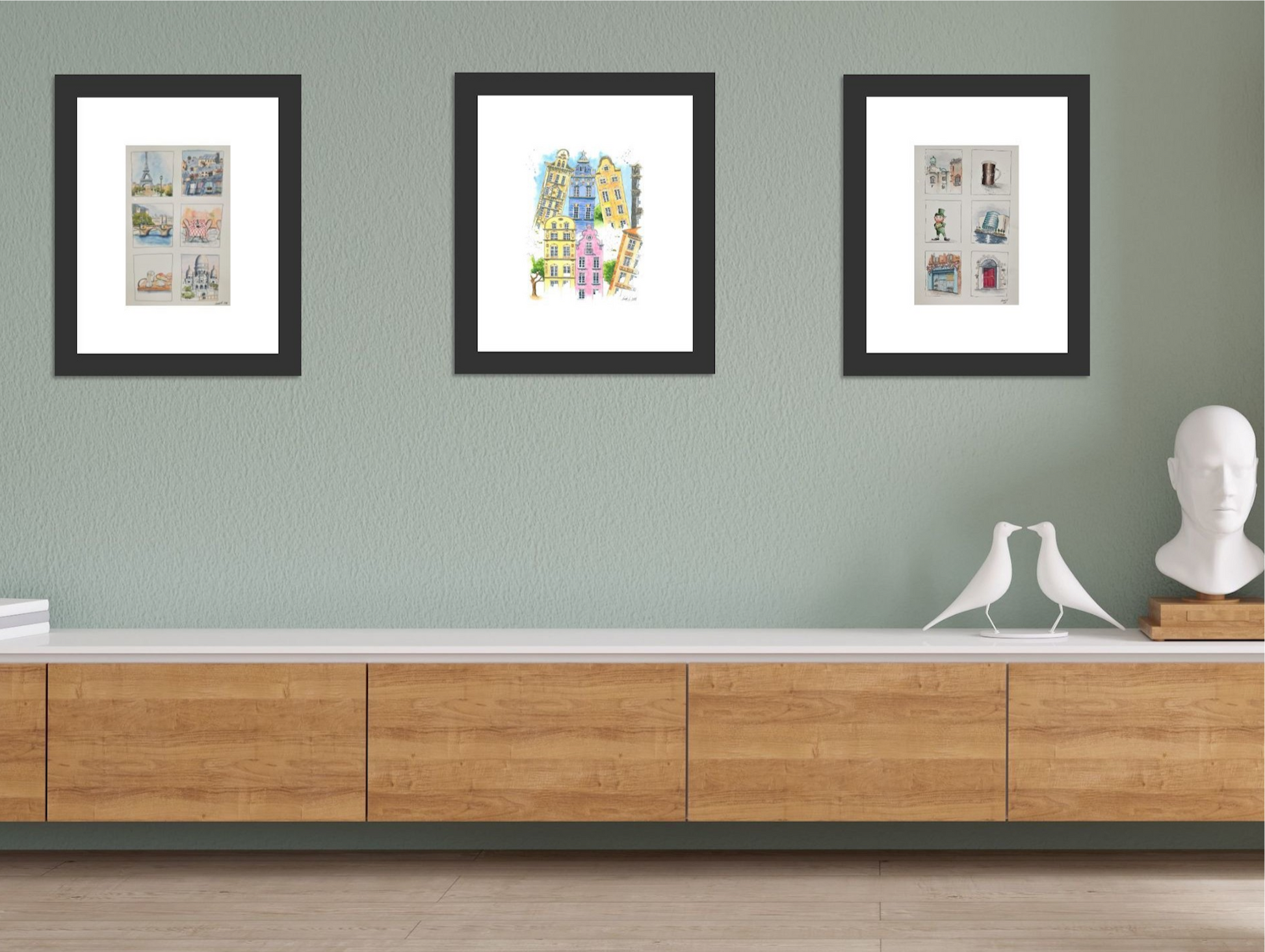 De karaktäristiska husen i Gdańsk reser sig sida vid sida, med sina unika former och uttryck. Varje fasad berättar sin egen historia, men tillsammans skapar de en harmonisk stadssiluett. Ett konstverk för dig som älskar europeiska stadsmiljöer med själ.