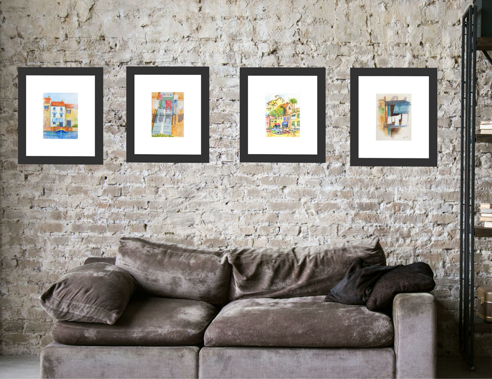 En balkong i Neapel där vita lakan fladdrar i vinden under en blå markis. Scenen fångar den enkla skönheten i vardagen, där ljuset och livet alltid känns närvarande. En målning som sprider både värme och autenticitet. Denna målning passar utmärkt med Spansk tvätt
